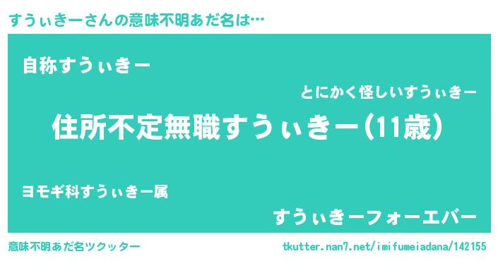 | ヒーロー風カッコイイあだ名 | 『仮面スウダー』『究極戦士スウィキー』 |