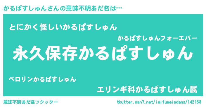| 女子向けラノベタイトル風あだ名 | 『異世界で失敗しない100のかるぱすしゅん』 |