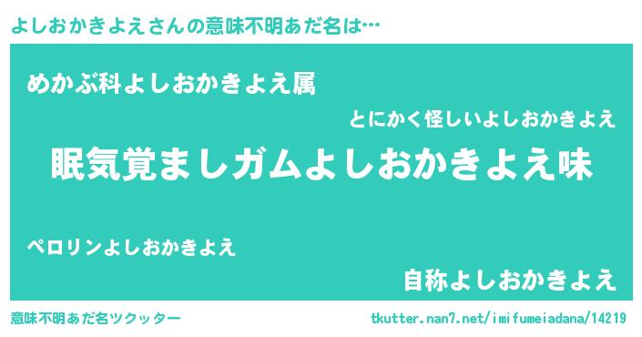 | 男性向けラノベタイトル風あだ名 | 『ノーゲーム・ノーヨシオカキヨエ』 |