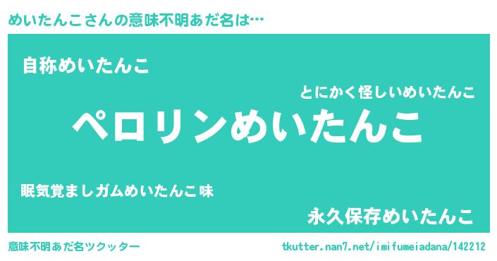 | ヘコむあだ名 | 『めいふぇ~』『めいたんこ(遠い目)』 |