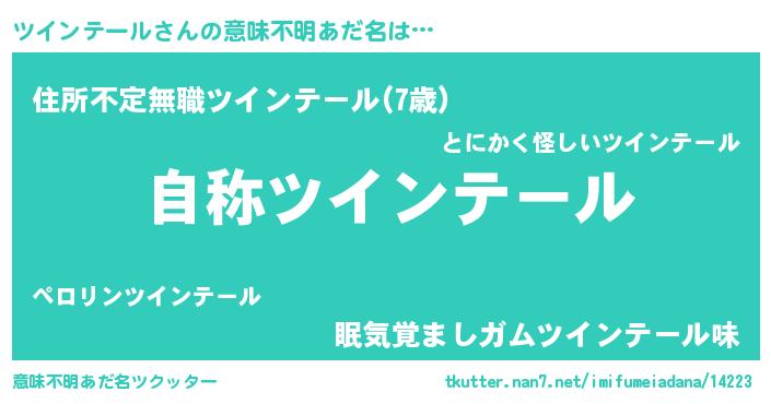 | ヒーロー風カッコイイあだ名 | 『最強戦士ツインテール』『仮面ツイダー』 |