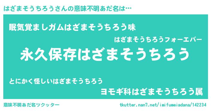 | ヘコむあだ名 | 『はざまそうちろう(遠い目)』『豆乳』 |