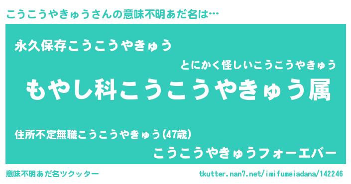 | 胡散臭い通販商品みたいなあだ名 | 『来世でも幸せになれる水素水…その名も「こうこうやきゅう」』 |