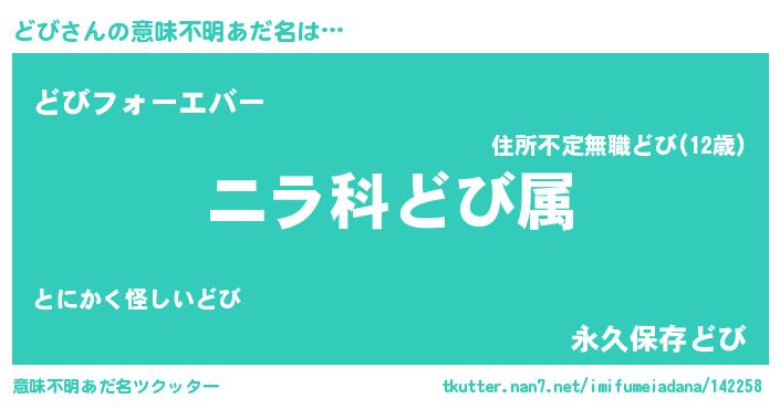 | ヘコむあだ名 | 『レバニラ』『どび(爆)』『どびを』 |
