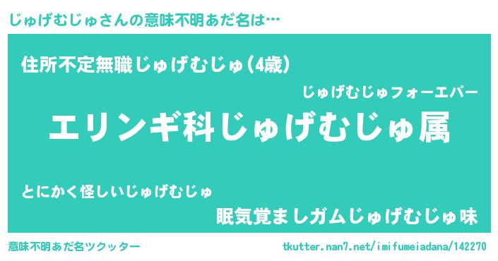 | 欧米人風あだ名 | 『じゅげむじゅ・ステッグマイヤー』 |