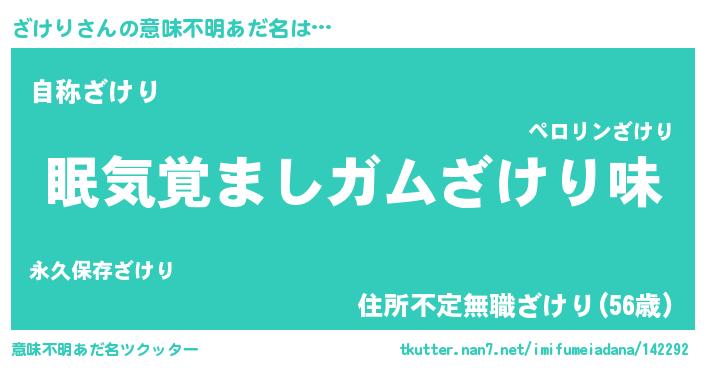| 男性向けラノベタイトル風あだ名 | 『ノーゲーム・ノーザケリ』 |
