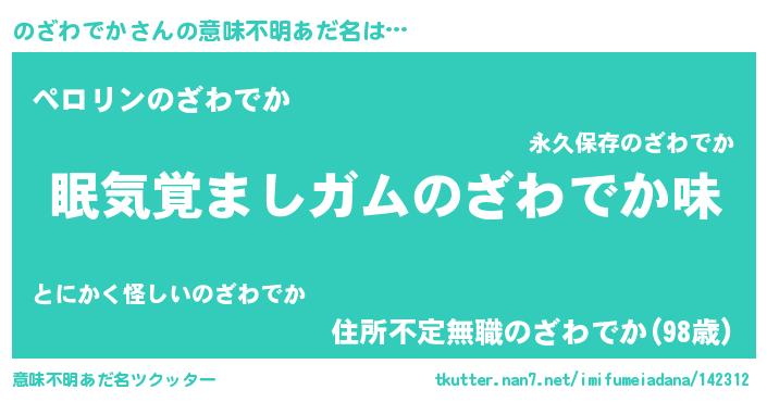 | ヘコむあだ名 | 『のざにー』『のざわでか(苦笑)』 |