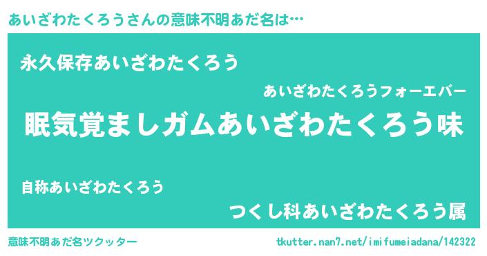 | ヘコむあだ名 | 『あいざわたくろう(苦笑)』『酢こんぶ』 |