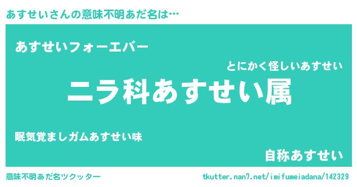 | 男性向けラノベタイトル風あだ名 | 『あすせい~年齢イコール彼女いない歴の魔法使い~』 |