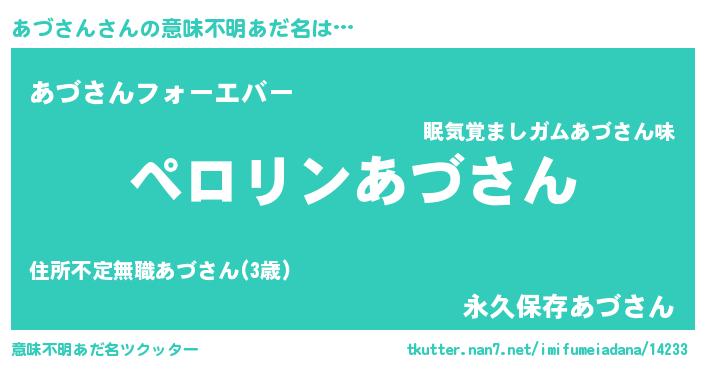 | 2回繰り返すあだ名 | 『あづあづ』『だらんだらん』 |