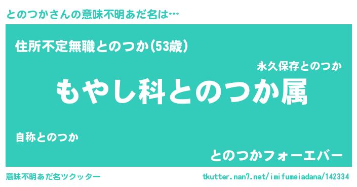 | 男性向けラノベタイトル風あだ名 | 『転生したらとのつかだった件』 |