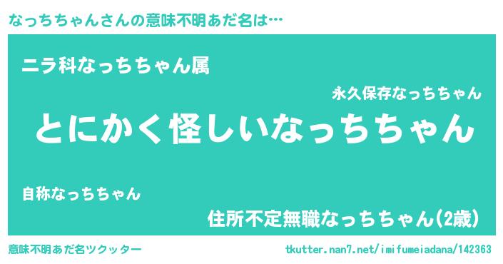 | 男性向けラノベタイトル風あだ名 | 『うちのなっちちゃんが世界を掌握している!』 |