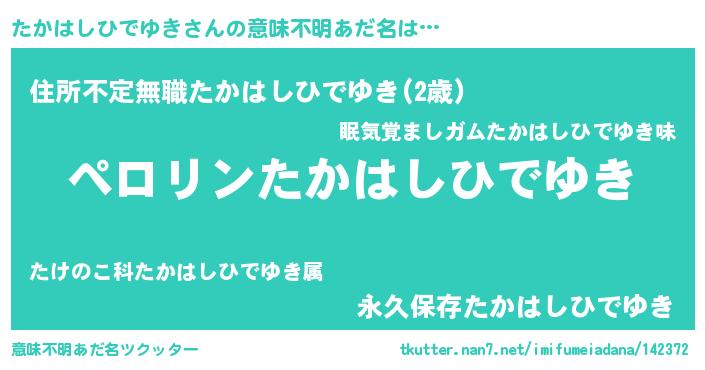 | 男性向けラノベタイトル風あだ名 | 『緋弾のタカハシヒデユキ』 |