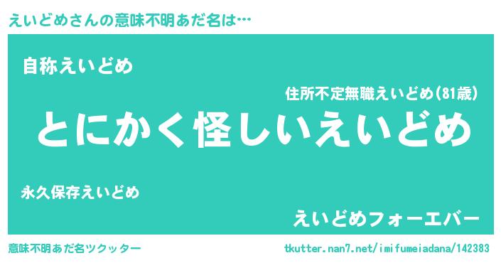 | 男性向けラノベタイトル風あだ名 | 『えいどめに滅ぼされるだけの簡単なお仕事です』 |