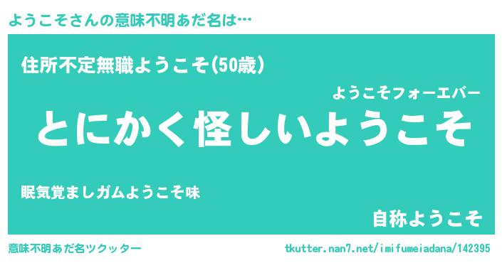 | 女子向けラノベタイトル風あだ名 | 『ようこそ様がみてる』『闇のようこそ』 |