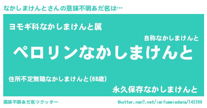 | 欧米人風あだ名 | 『なかしまけんと・ステッグマイヤー』 |