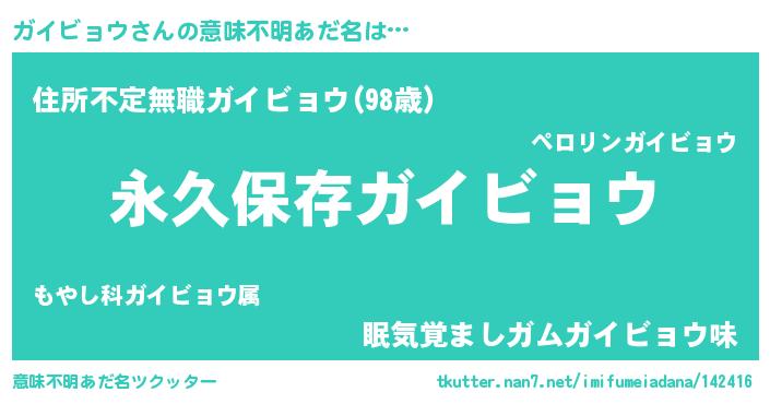 | ヒーロー風カッコイイあだ名 | 『ネオガイビョウ』『仮面ガイダー』 |