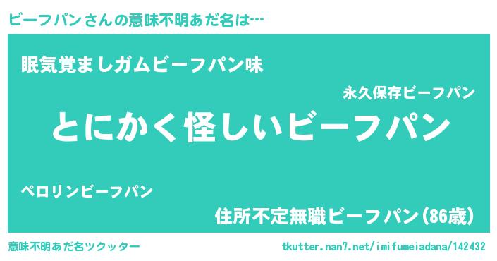 | ヘコむあだ名 | 『ビーを』『ビーフパン(遠い目)』 |