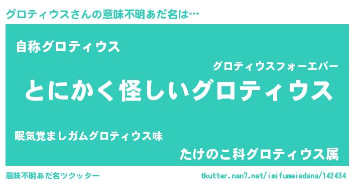 | 女子向けラノベタイトル風あだ名 | 『グロティウスの卵を拾いまして』 |