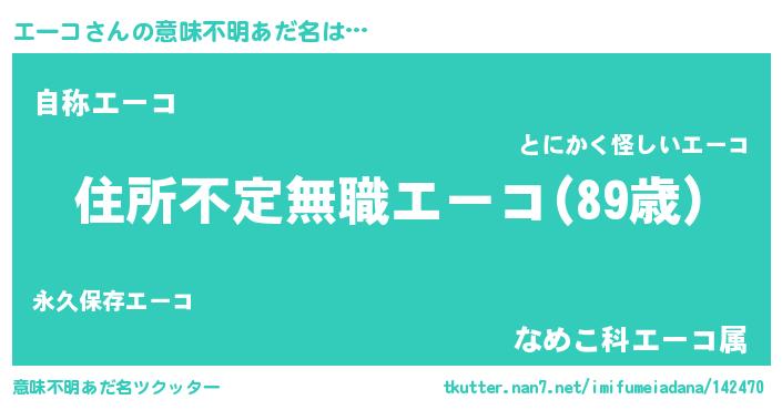 | 男性向けラノベタイトル風あだ名 | 『この素晴らしい世界にエーコを!』 |