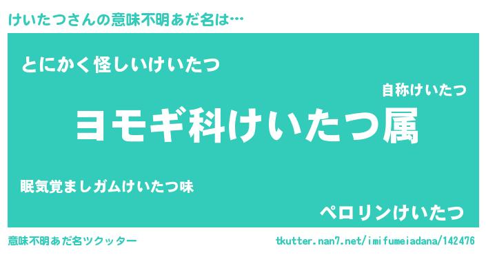 | ヘコむあだ名 | 『けい太郎』『けいもー』『なまこ酢』 |