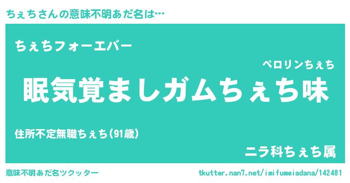 | 女子向けラノベタイトル風あだ名 | 『死神ちぇちの再婚』『ちぇち伯爵の花嫁』 |