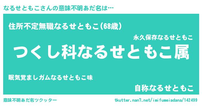 | 男性向けラノベタイトル風あだ名 | 『なるせともこに滅ぼされるだけの簡単なお仕事です』 |