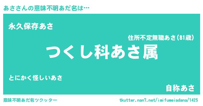 | 胡散臭い通販商品みたいなあだ名 | 『前代未聞の健康食品…その名も「あさ」』 |