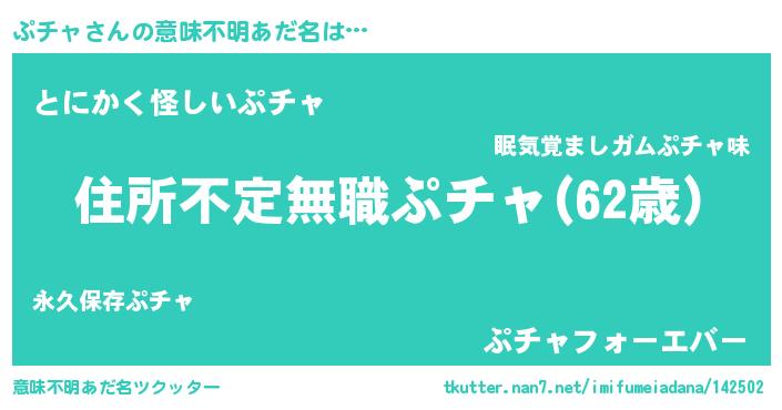 | 男性向けラノベタイトル風あだ名 | 『この素晴らしい世界にぷチャを!』 |