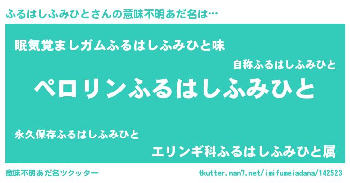 | 胡散臭い通販商品みたいなあだ名 | 『必ず成功する霊験あらたかなお札…その名も「ふるはしふみひと」』 |