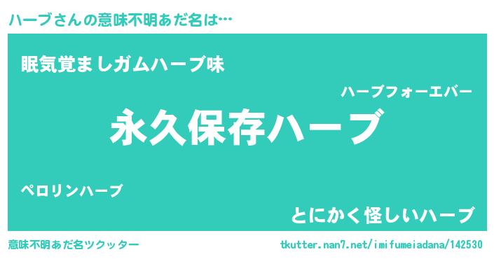 | 男性向けラノベタイトル風あだ名 | 『ハーブという概念が存在しない退屈な世界 』 |