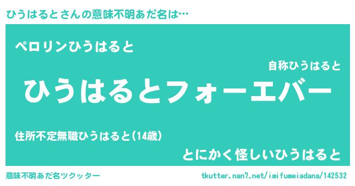 | 男性向けラノベタイトル風あだ名 | 『ひうはるとに滅ぼされるだけの簡単なお仕事です』 |