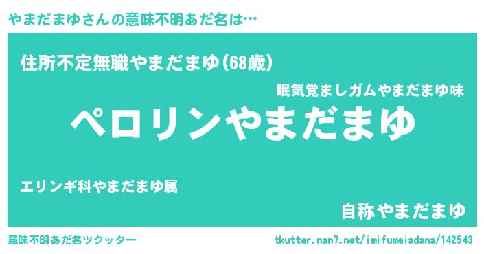 | 女子向けラノベタイトル風あだ名 | 『やまだまゆ姫と円卓の騎士』 |