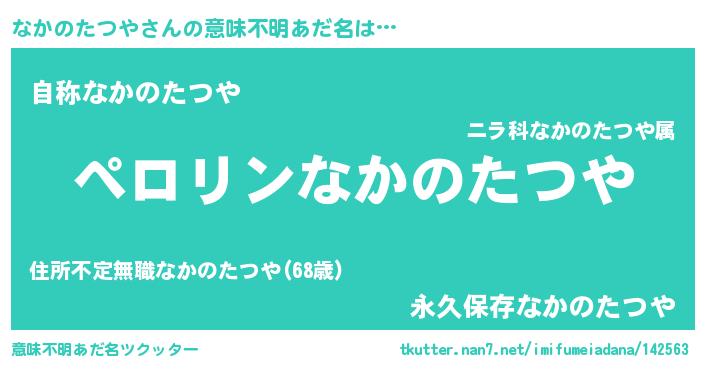 | 男性向けラノベタイトル風あだ名 | 『なかのたつやの憂鬱』 |
