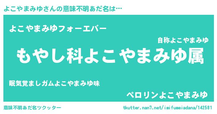 | 男性向けラノベタイトル風あだ名 | 『転生したらよこやまみゆだった件』 |