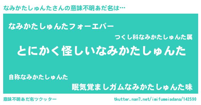 | 女子向けラノベタイトル風あだ名 | 『シンデレラなみかたしゅんた家の靴箱館』 |