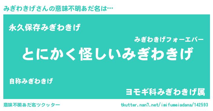 | ヘコむあだ名 | 『みぎを』『みぎわきげ(爆)』 |