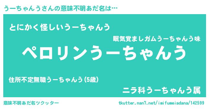 | 胡散臭い通販商品みたいなあだ名 | 『モテモテ間違いなし霊験あらたかなお札…その名も「うーちゃんう」』 |