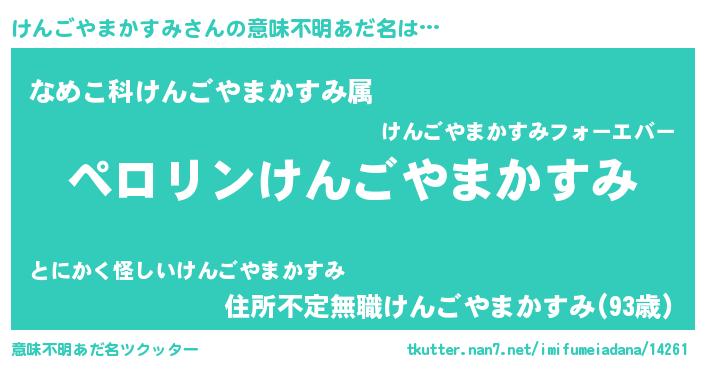 | ヒーロー風カッコイイあだ名 | 『スーパーケンゴヤマカスミ』 |