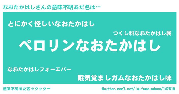 | 胡散臭い通販商品みたいなあだ名 | 『億万長者になれる霊験あらたかなお札…その名も「なおたかはし」』 |