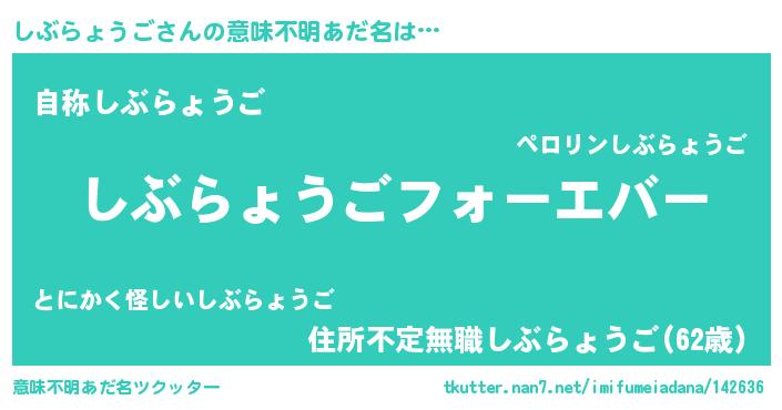 | ファンタジー風あだ名 | 『エターナルシブラョウゴー』 |