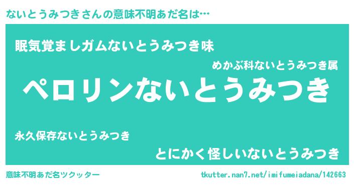 | 女子向けラノベタイトル風あだ名 | 『(仮)ないとうみつきのやんごとなき事情』 |