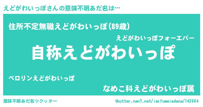 | 男性向けラノベタイトル風あだ名 | 『Re:えどがわいっぽから始める異世界生活』 |