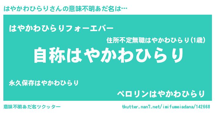 | 肩書あだ名 | 『はやかわひらり閣下』 |