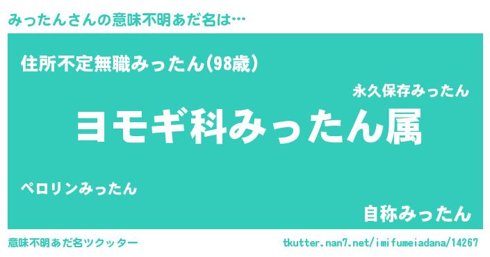 | ヘコむあだ名 | 『みったん(震え声)』『みっっふぃ~』 |