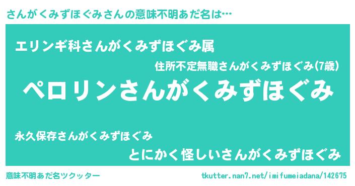 | 胡散臭い通販商品みたいなあだ名 | 『億万長者になれる水晶球…その名も「さんがくみずほぐみ」』 |