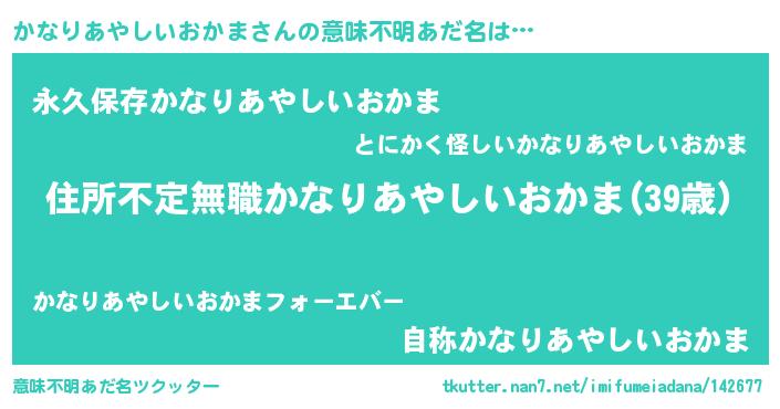 | ヘコむあだ名 | 『かなりあやしいおかま(笑)』『かなっぺ』 |