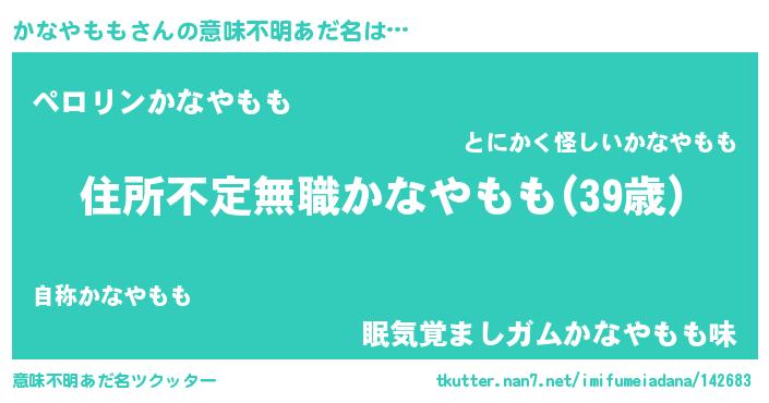 | 男性向けラノベタイトル風あだ名 | 『魔弾の王とかなやもも』 |