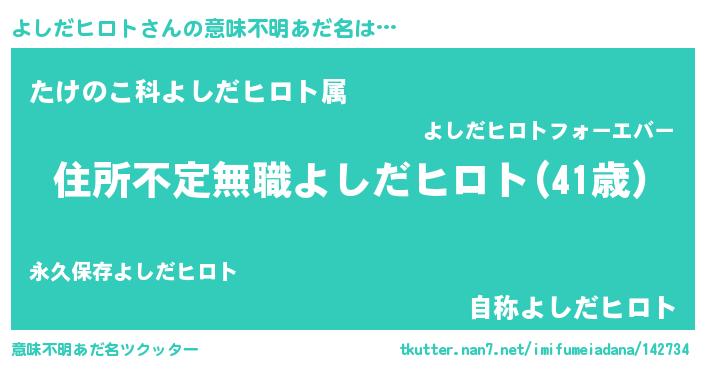 | 男性向けラノベタイトル風あだ名 | 『魔弾の王とよしだヒロト』 |