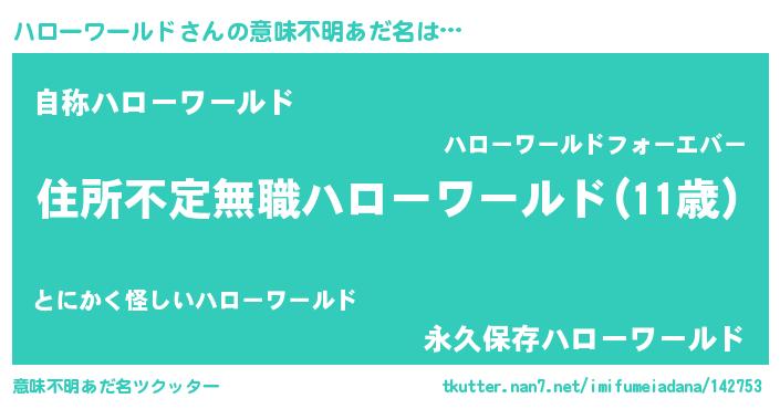 | ヘコむあだ名 | 『ハローワールド(笑)』『豆乳』 |